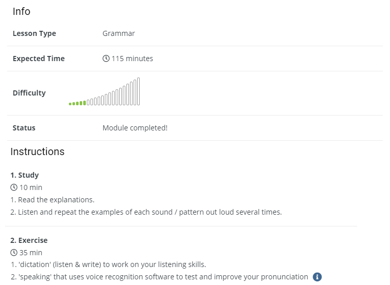 Prima di iniziare la lezione successiva, è possibile visualizzare il tempo approssimativo da dedicarle e come studiare per ottenere il massimo rendimento.